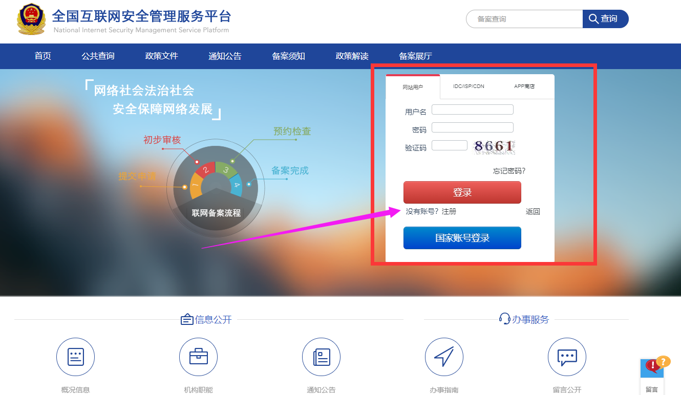 一、在全國互聯網安全管理服務平臺上 http://www.beian.gov.cn/portal/index.do 進行用戶注冊。