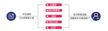 商家打開抖店后臺上方的導航欄,點擊“營銷中心”,即可找到【營銷工具】,包括優惠券、限時限量購、滿減、定時開售和拼團五大類,覆蓋流量轉化與商品推廣等多種需求。商家可以在售前根據各自的需要進行選擇、搭配。